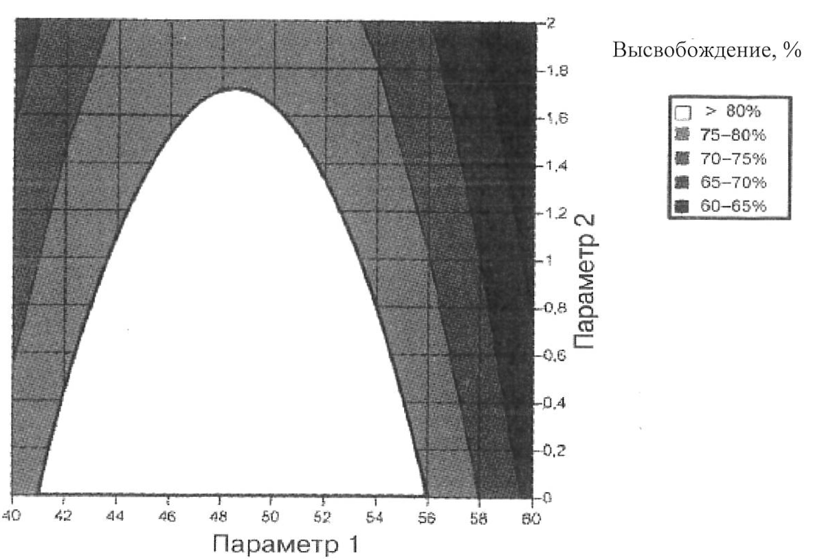 Рисунок 7. Контурная диаграмма высвобождения как функция параметров 1 и 2