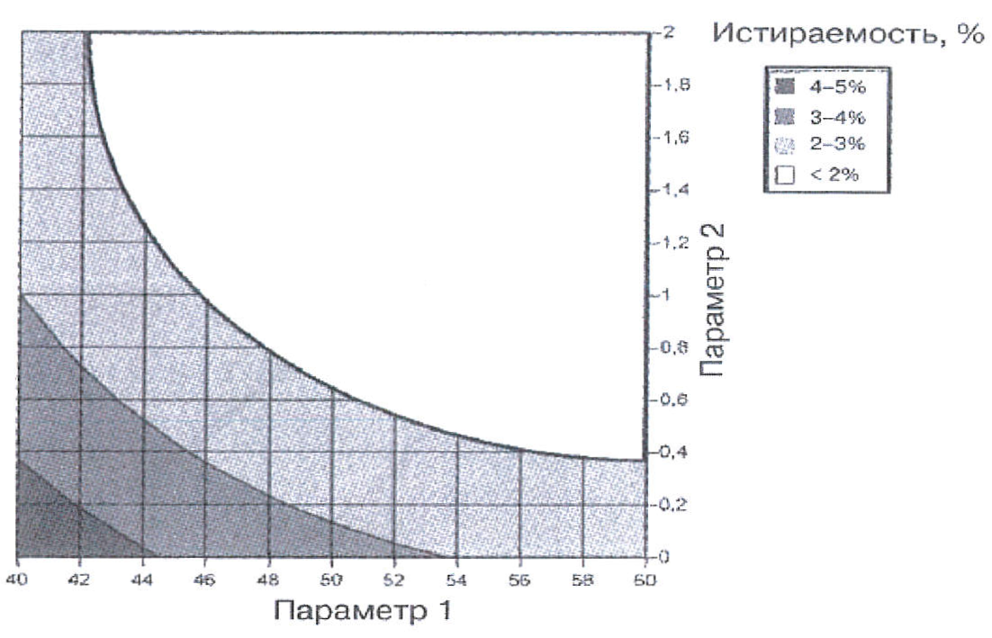 Рисунок 8. Контурная диаграмма истираемости как функция параметров 1 и 2