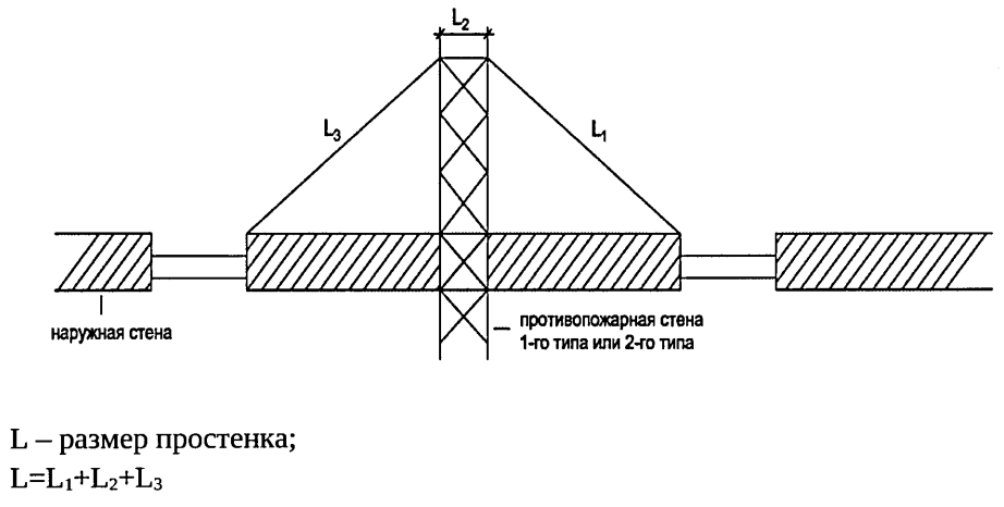 Примечание. Общая (суммарная) ширина указанных участков наружной стены определяется без учета толщины противопожарной стены 1-го типа.