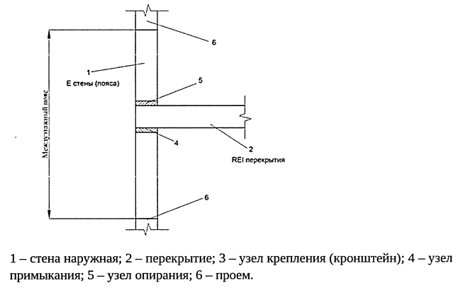 | Предел огнестойкости узлов примыкания и крепления наружных навесных стен (в том числе светопрозрачных) к перекрытиям предусмотрен не менее требуемого предела огнестойкости примыкающего перекрытия и оценивается по признаку потери целостности (Е) и теплоизолирующей способности (I) для узла примыкания, а для узла крепления - по потере несущей способности (R) | Да | Да |