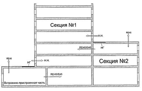 | Наличие простенков с пределом огнестойкости, соответствующим требованиям для наружных ненесущих стен, шириной не менее, м | н.н. | 0,8 |