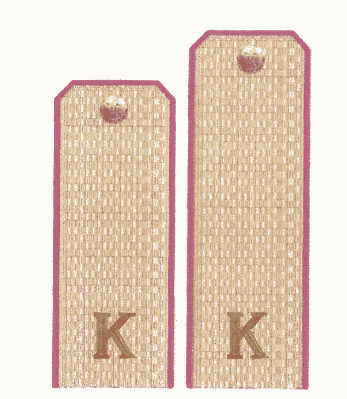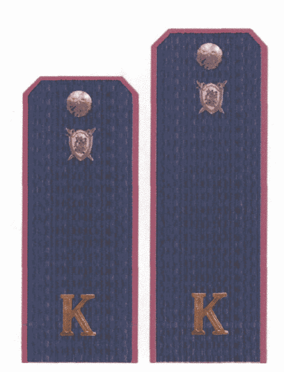 В нижней части съемных наплечных знаков-муфт защитного (камуфлированного) цвета, нашивных и съемных наплечных знаков золотистого и синего цвета продольно по центру наплечного знака (муфты) будет размещаться буква "К" из ПВХ-пленки золотистого цвета, высотой 20 мм и на расстоянии от нижнего края наплечного знака (муфты) до нижнего среза буквы 15 мм. Приведены эскизы наплечных знаков.