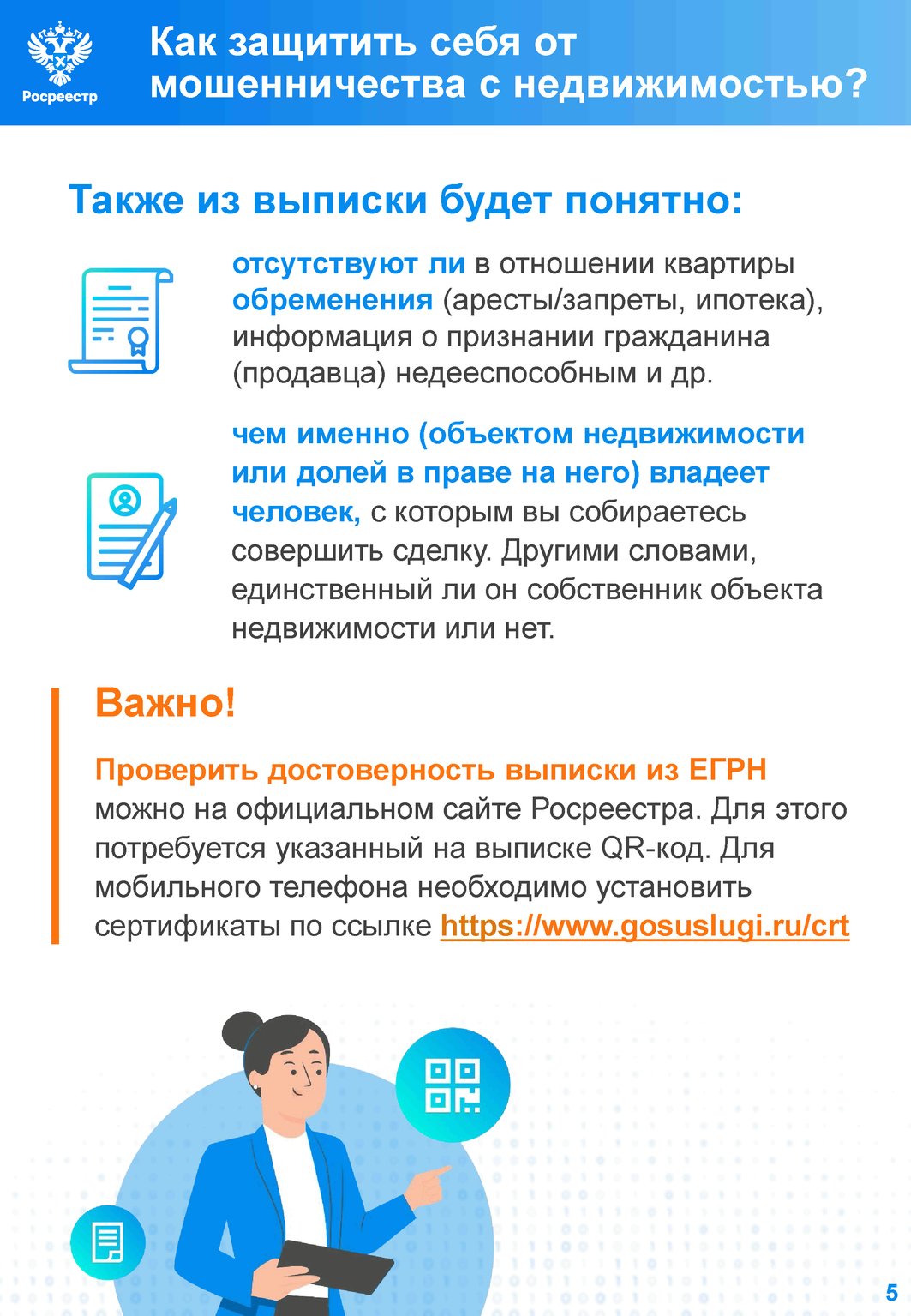 (!) Проверить достоверность выписки из ЕГРН можно на официальном сайте Росреестра. Для этого потребуется указанный на выписке QR-код. Для мобильного телефона необходимо установить сертификаты по ссылке https://www.gosuslugi.ru/crt