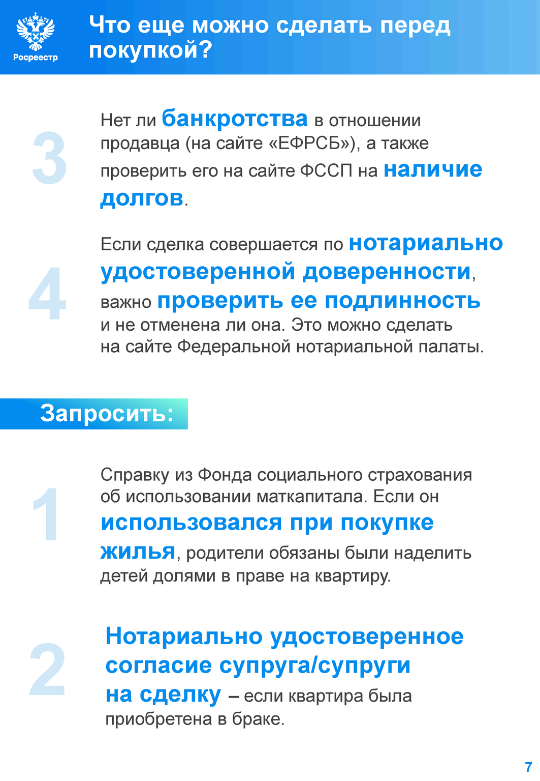 2. Нет ли банкротства в отношении продавца (на сайте "ЕФРСБ"), а также проверить его на сайте ФССП на наличие долгов.
