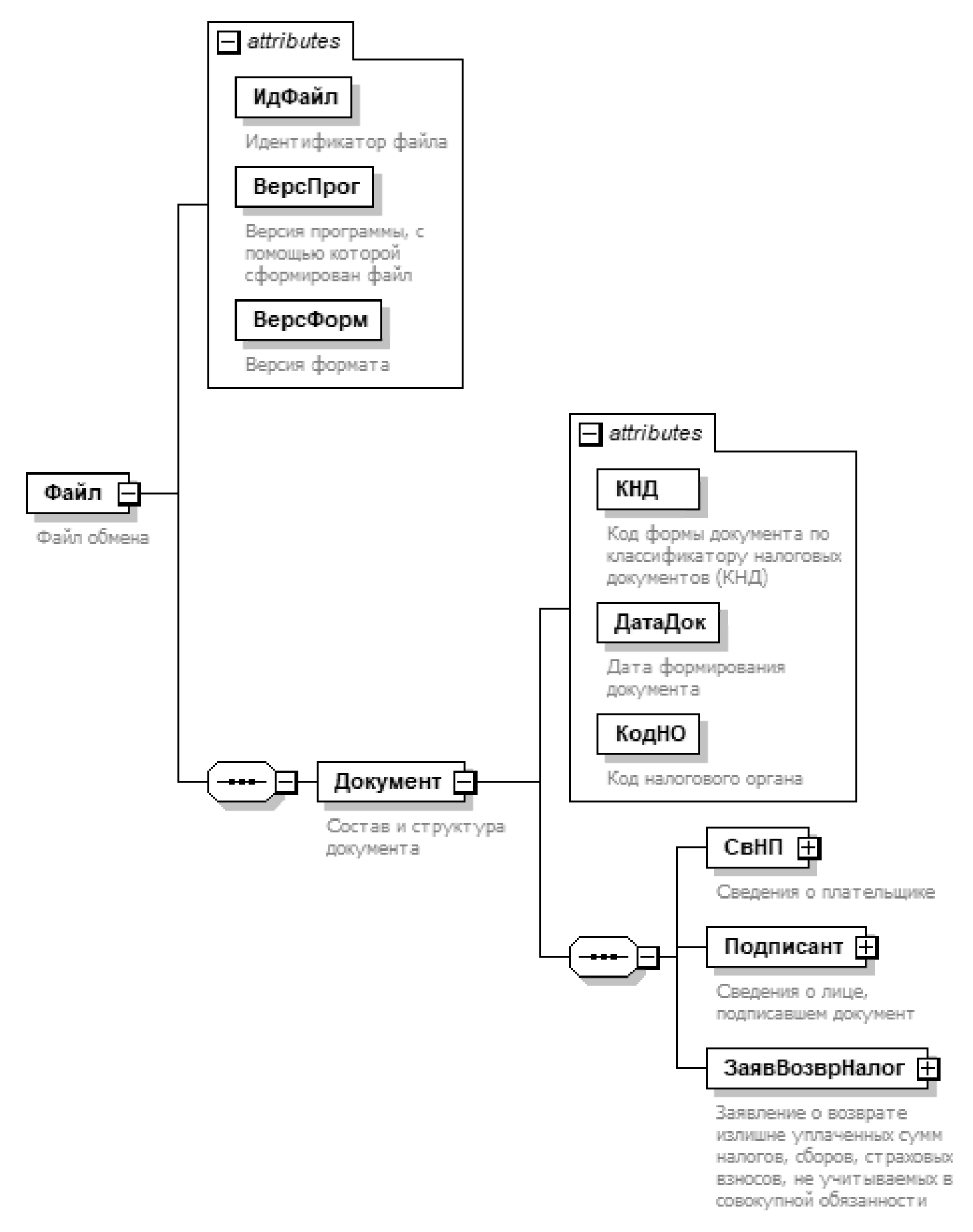 XML-схема файла обмена приводится отдельным файлом и размещается на официальном сайте Федеральной налоговой службы в информационно-телекоммуникационной сети "Интернет".