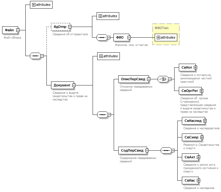 | Сведения о выдаче свидетельства о праве на наследство | Документ | С | О | Состав элемента представлен в табл. 4.3 | |