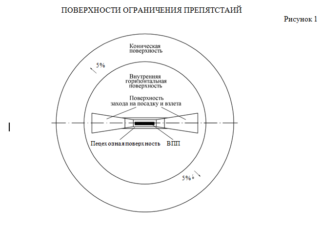 Сводный план поверхностей ограничения препятствий на вертодроме с ВПП схематично представлен на рисунке 1 приложения N 3 к настоящим Правилам.