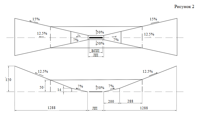 21.2. Переходная П (наклонная поверхность, расположенная вдоль боковых границ ЛП и простирающаяся вверх и в стороны до внутренней горизонтальной поверхности) имеет: