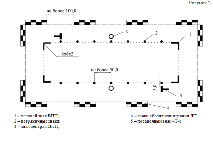 На покрытии ВПП должны быть нанесены пограничные знаки ВПП, цифровые знаки посадочного магнитного путевого угла, буквенные знаки "Н", знак ограничения мест приземления.