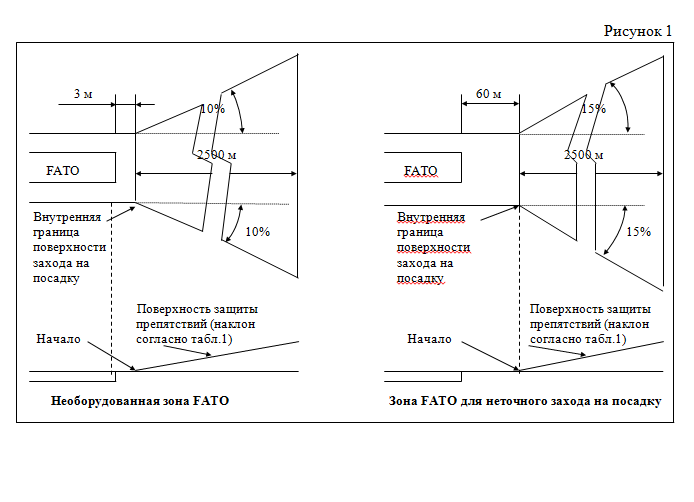 | Расстояние от конца зоны FATO | Минимум 3 м | 60 м | |