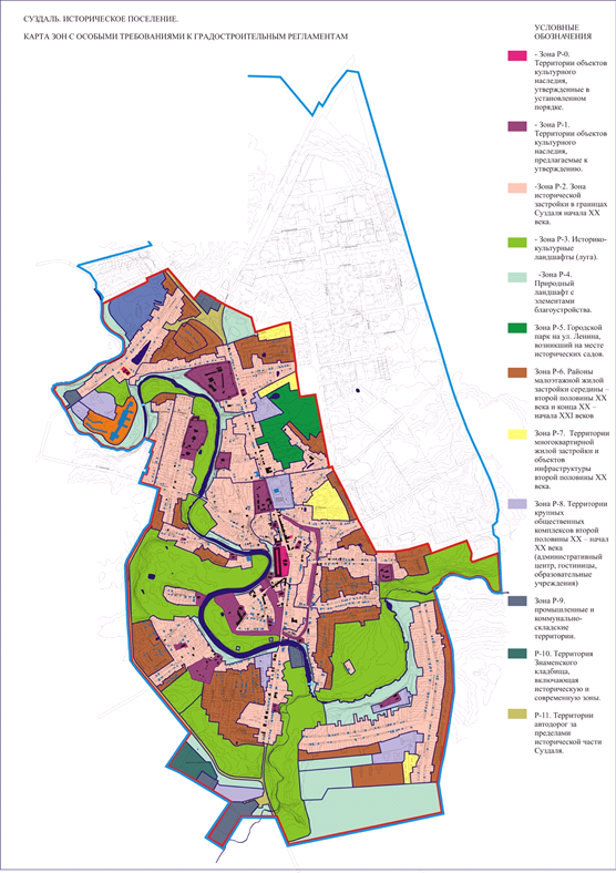 - Зона Р-2. Зона исторической застройки в границах Суздаля начала XX века.
