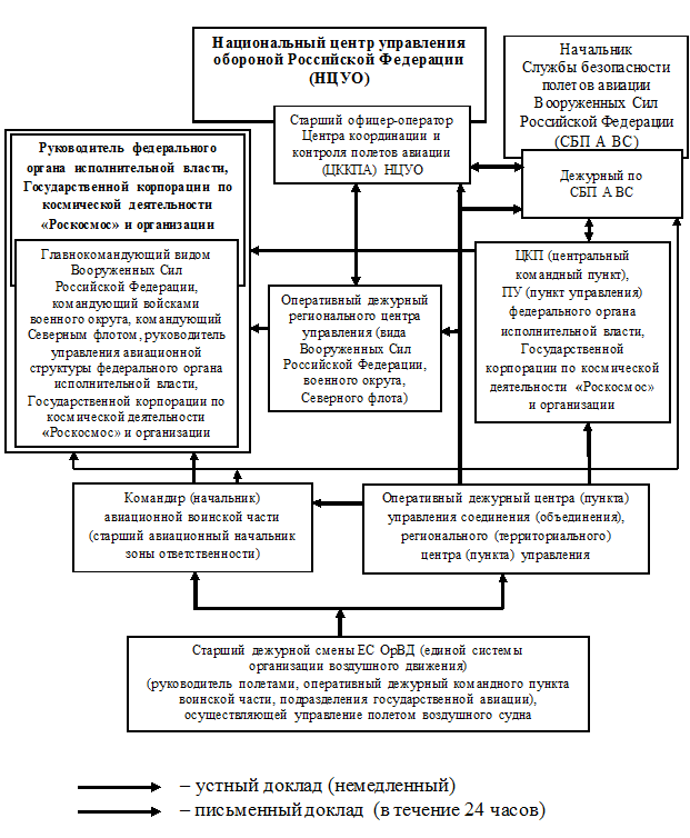 16. Осуществление докладов при оповещении об авиационных происшествиях с государственными воздушными судами в Российской Федерации проводится в соответствии со схемой, приведенной в приложе-нии к Порядку взаимодействия.