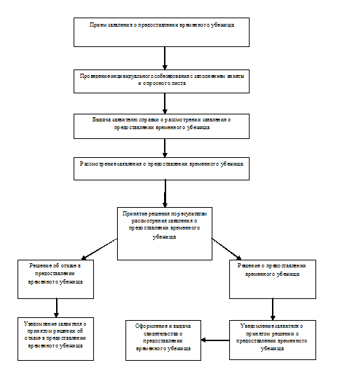 блок-схема государственной услуги по рассмотрению ходатайств о признании беженцем на территории Российской Федерации и заявлений о предоставлении временного убежища на территории Российской Федерации (приложение N 2 к Административному регламенту).