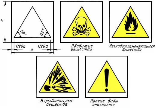 14. Предупреждающие знаки должны иметь форму треугольника. Изображения должны быть черного цвета на желтом фоне.