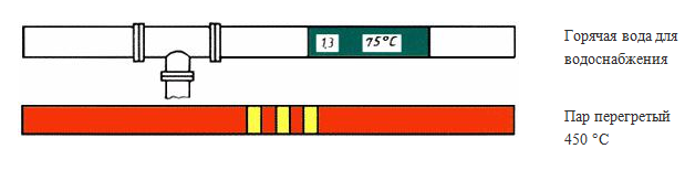 Рис. 4. Примеры выполнения опознавательной окраски трубопроводов