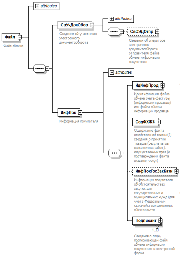 формат представления счета-фактуры с дополнительной информацией (информации продавца), состоящий из сведений, предусмотренных для счетов-фактур статьей 93 НК РФ и Постановлением Правительства № 1137, а также дополнительных сведений передающей стороны об участвующих в сделке экономических субъектах, предмете сделки и иных существенных обстоятельствах оформляемой сделки (информация продавца). Файл подписывается лицом, уполномоченным на подписание счетов-фактур и лицом, ответственным за оформление факта хозяйственной жизни со стороны передающего экономического субъекта.