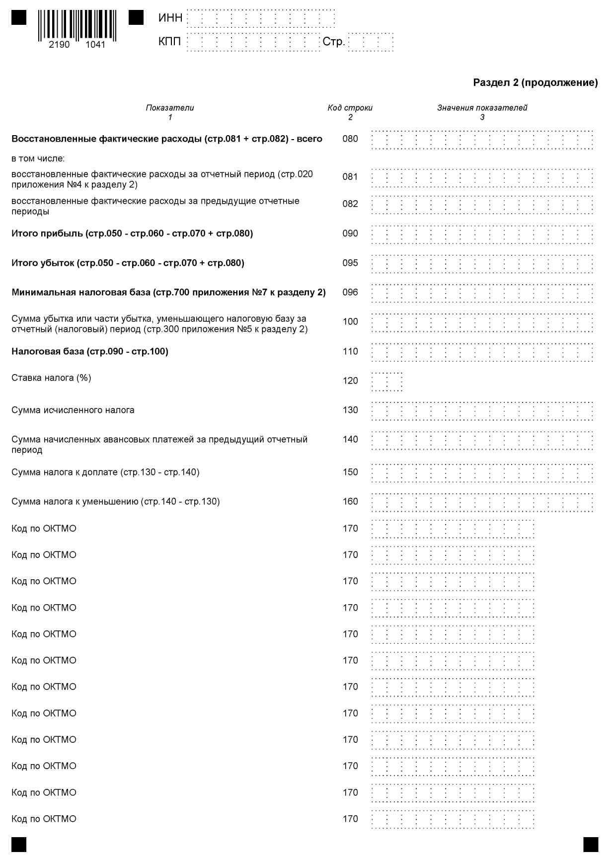 Приложения N 4, N 5, N 6 к Разделу 2 включаются в состав Декларации и представляются в налоговый орган, если налогоплательщик имеет расходы, подлежащие восстановлению в отчетном (налоговом) периоде, исторические убытки, а также в случае получения налогоплательщиком убытка в отчетном (налоговом) периоде, либо использования права на применение суммы убытка или части убытка для уменьшения налоговой базы текущего отчетного (налогового) периода.