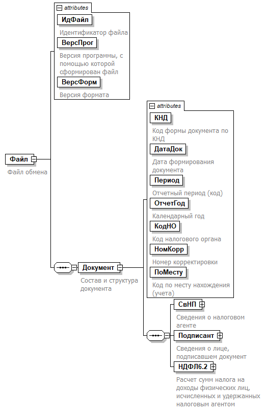 | Сведения о доходах и соответствующих вычетах по месяцам налогового периода | ДохВыч | С | О | Состав элемента представлен в таблице 4.22 |