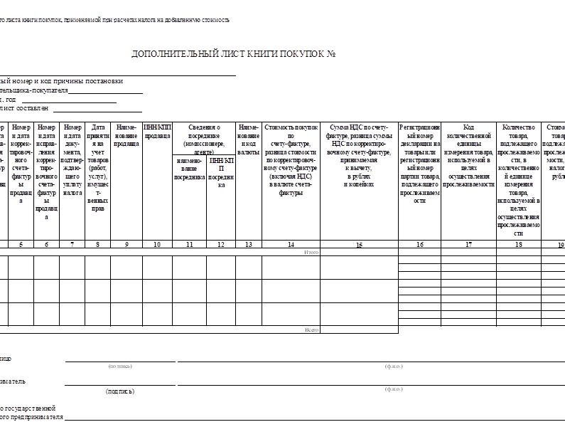 у) в графе 19 - стоимость поставляемых (отгруженных) по счету-фактуре товаров, подлежащих прослеживаемости, без налога на добавленную стоимость, указываемая отдельно по каждому регистрационному номеру партии товара, подлежащего прослеживаемости, указанному в соответствующей подстроке графы 16 дополнительного листа книги покупок.