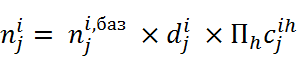 - произведение значений (c) отраслевых корректирующих коэффициентов для j-той составляющей базовых нормативов затрат на оказание i-той государственной (муниципальной) услуги по h-тому отраслевому корректирующему коэффициенту.