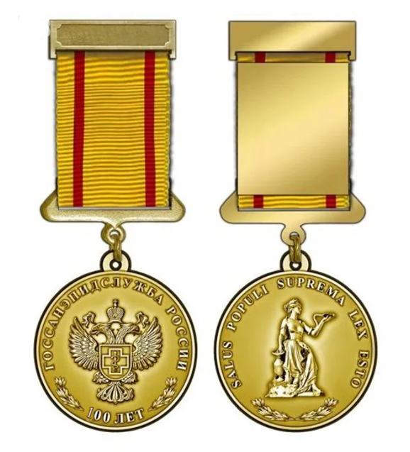 памятной медали "100 лет ГОССАНЭПИДСЛУЖБЕ РОССИИ" Федеральной службы по надзору в сфере защиты прав потребителей и благополучия человека