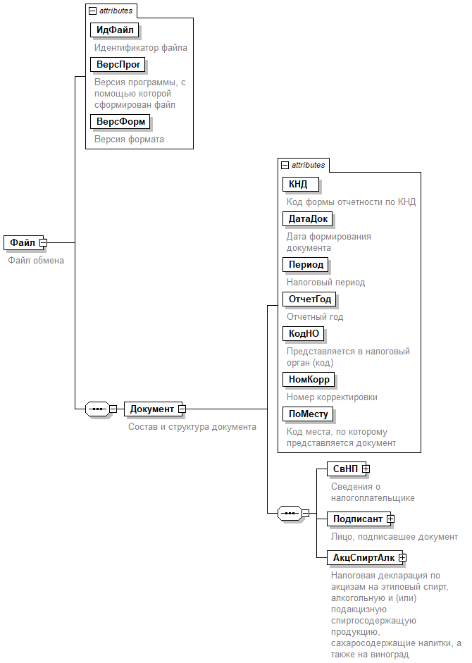 | Сведения об использовании этилового спирта по виду алкогольной и (или) подакцизной спиртосодержащей продукции в пределах расчетного срока | СведИспСпВидПП | С | НМ | Состав элемента представлен в таблице 4.45 | |