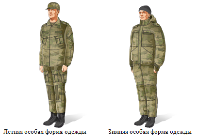 76. Костюмы зимние и летние особой формы одежды носятся в аналогичном порядке, установленном соответственно для костюмов зимних и летних специальных камуфлированной расцветки.