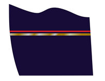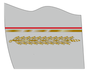 101. Знак числа ранений из галуна шириной 6 мм и длиной 43 мм золотистого цвета (при тяжелом ранении) и темно-красного цвета (при легком ранении) располагается на планке из ткани верхней одежды. Знак числа ранений при тяжелом ранении размещается ниже знака числа ранений при легком ранении, расстояние между ними - 3 мм.