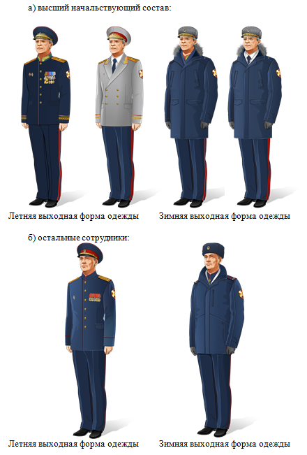 9. Рисунки выходной формы одежды лиц начальствующего и рядового состава: