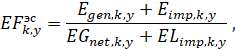 - объем электрической энергии, импортируемой в расчётную зону k из смежной с ней расчетной зоны и/или электроэнергетической системы иностранного государства x за период y, МВт-ч. Значение определяется по данным коммерческого учета электрической энергии на оптовом рынке электрической энергии и мощности;