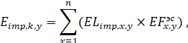 13.4. Объем выбросов ПГ, образующихся в результате производства электрической энергии, импортируемой из смежных по отношению к расчетной зоне k других расчетных зон и (или) энергосистем иностранных государств x за период y, определяется по формуле (4).