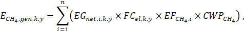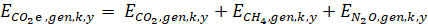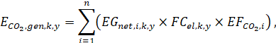 - объем выбросов ПГ, образующихся в результате производства электрической энергии, отпускаемой во внешнюю электрическую сеть электростанциями (энергоустановками), находящимися в расчетной зоне k, за период y, кг (