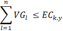 - объем выбросов ПГ, образующихся в результате производства электрической энергии на квалифицированных генерирующих объектах l, расположенных в расчетной зоне k, за период y, по факту которого возникли атрибуты генерации, о чем в реестр атрибутов генерации внесены соответствующие записи, кг (