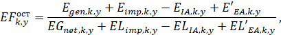 - объем электрической энергии, импортируемой в расчетную зону k за период y, МВт-ч. Значение определяется по данным коммерческого учета электрической энергии на оптовом рынке электрической энергии и мощности;