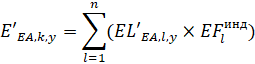 - индивидуальный коэффициент выбросов, характеризующий производство электрической энергии на квалифицированном генерирующем объекте l, кг (