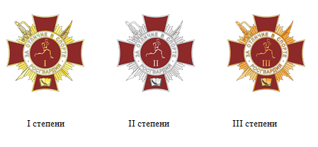 Российской Федерации "За отличие в спорте" I, II и III степени,