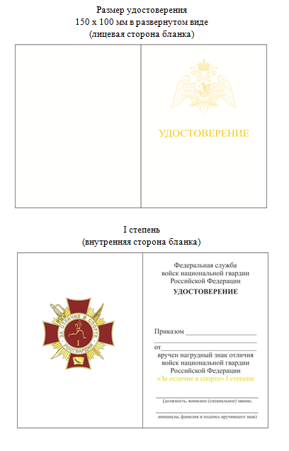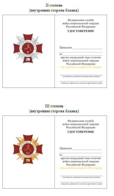 к официальному геральдическому знаку - нагрудному знаку отличия войск национальной гвардии Российской Федерации "За отличие в спорте" I, II и III степени