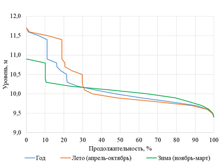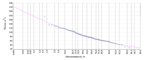 | Вероятность превышения годового стока | 1 % 5 % 10 % 25 % 50 % 75 % 90 % 95 % 97 % | м?/с | 928 813 755 659 557 462 382 338 311 |
