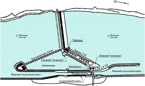 8. При проектировании Волховского гидроузла учитывались интересы всех отраслей экономики рассматриваемого региона. Основным его назначением являлась выработка электроэнергии и обеспечение судоходных глубин на р. Волхов, а также регулирование уровней и расходов воды, необходимых для работы водозаборных сооружений и обеспечение условий для сохранения и воспроизводства рыбных запасов.