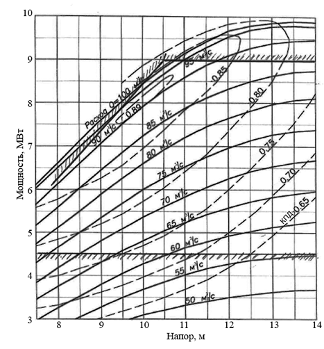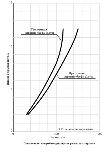(при необходимости указываются предельные отметки уровней воды в верхнем и нижнем бьефах гидроузла, минимальные суммарные