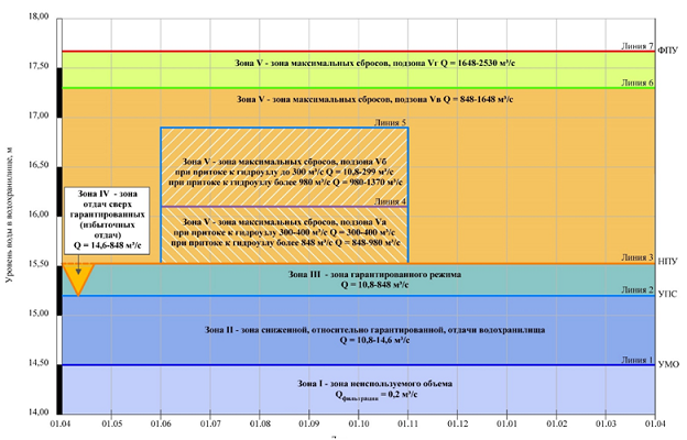 сбросы, предельные интенсивности наполнения (сработки) водохранилища, другие ограничения)