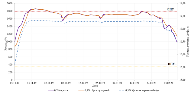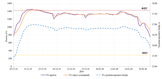 режим работы гидроузла Волховского водохранилища с суммарными сбросами в нижний бьеф: ___________________________________________________________,