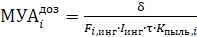 31. Для пути внутреннего облучения населения, обусловленного вдыханием пыли при работе на орошаемой территории, максимальная допустимая удельная активность i-го радионуклида в воде водного объекта (участка водного объекта) из рассматриваемых в составе водной системы рассчитывается по формуле: