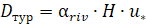 37. Величина коэффициента турбулентной дисперсии в поперечном к течению направлении (Dтур) рассматриваемого участка реки или водотока рассчитывается по формуле: