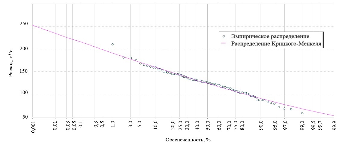 12. Параметры естественного годового стока р. Кемь в створах гидроузлов водохранилищ рассчитаны по ряду 1926-2022 гг.