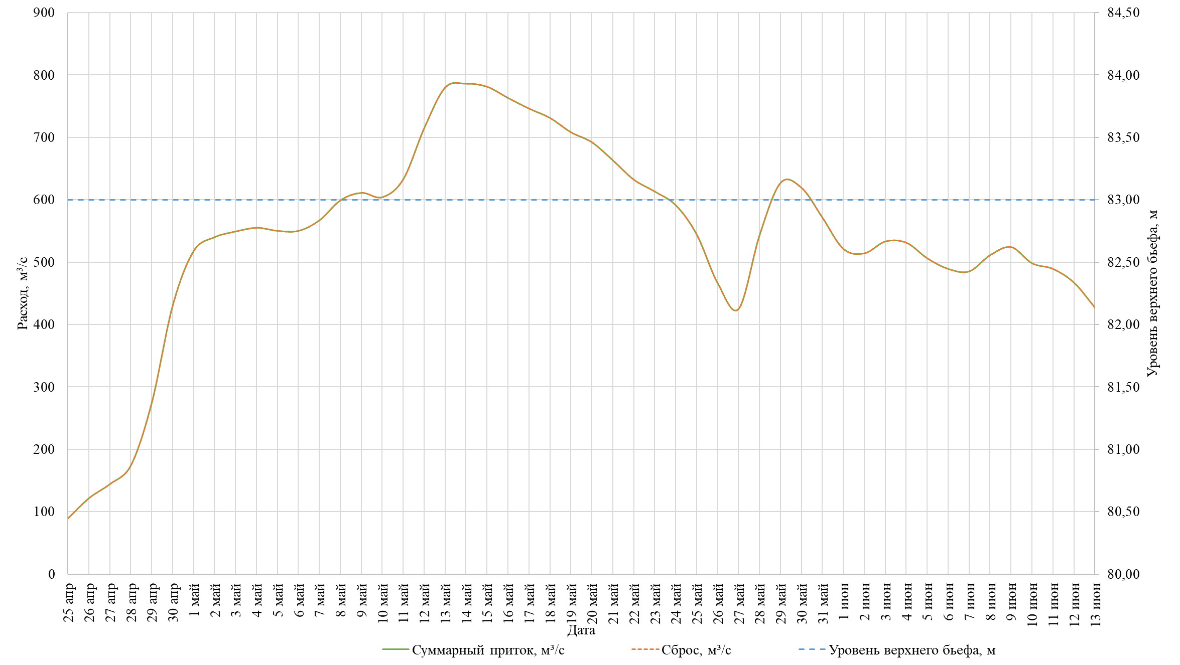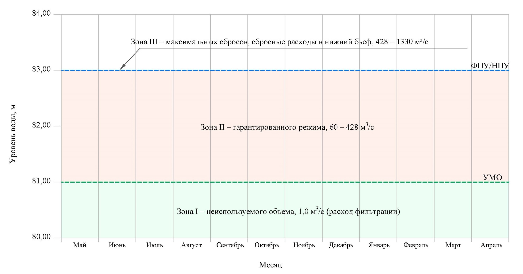Первоначальное наполнение водохранилища до отметки 79,00 м произведено в мае 2023 г., до нормального подпорного уровня (далее - НПУ) 83,00 м - в 2024 г.