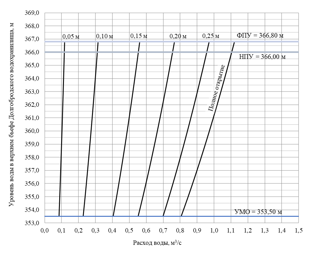 | Расход воды | м 3/с | 10,20 | 7,32 | 5,71 | 4,34 | 2,83 |