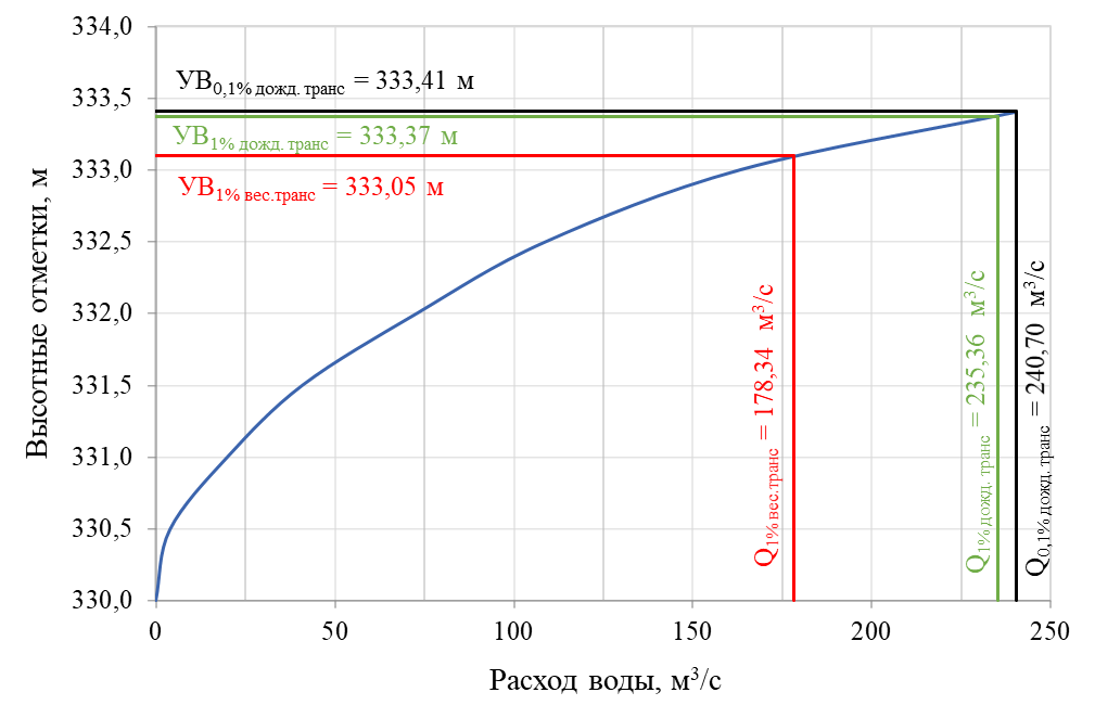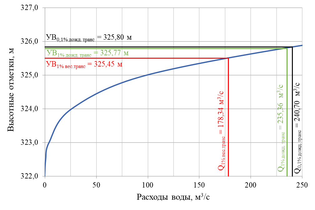 Расчет пропуска максимальных расходов воды дождевых паводков обеспеченностью 1 % в створе плотины Долгобродского водохранилища: