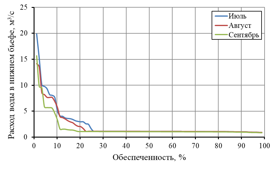 | Расход воды, м 3/с | 3,31 | 3,1 | 2,84 | 42 | 48,2 | 16,8 | 11,9 | 9,58 | 8,34 | 9,7 | 5,89 | 3,76 |
