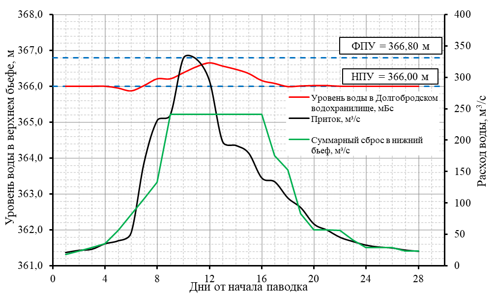 режим работы Долгобродского водохранилища с суммарными сбросами в нижний бьеф: ____________________________________________________________________________________,